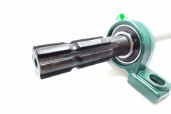 На рабочий металлический стол крепят: Подшипники в корпусе, шлицевой вал и конус винтового дровокола. Агрегация шлицевого вала и вала отбора мощности трактора осуществляется через кардан для навесного оборудования.